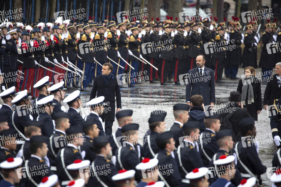 Emmanuel Macron und Edouard Philippe bei der 101. Jahrfeier des Waffenstillstands von 1918 am Triumphbogen. Paris, 11.11.2019