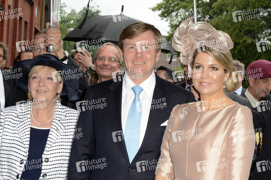 Hannelore Kraft, König Willem-Alexander der Niederlande und Königin Maxima der Niederlande bei ihrer Ankunft bei der Firma MMID vor dem Gebäude G7 auf der Katernberger Strasse. Essen, 27.05.2014