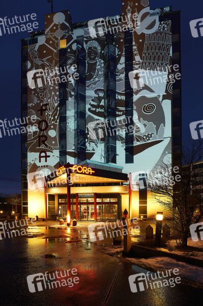 '3 Tage, 3 Wochen, 3 Künstler - Wir leuchten, um gesehen zu werden' - Ab dem 15.02.2021 illuminiert das Fora Hotel drei Wochen lang, an jeweils drei Tagen (Montag bis Mittwoch von 18:00 Uhr bis 21 Uhr) die Hotel-Fassade mit den Exponaten von drei lokalen Künstlern. 15. bis 17.02.2021 Popart-Kunst von Della, 22. bis 24.02.2021 Graffiti-Kunst von Make Your Mark und 01. bis 03.03.2021 Graffiti-Kunst von BeNeR1. Gemeinsam mit dem Unternehmen allstars event GmbH, die Aktionen wie 'Hannover leuchtet' und 'Night of Light' umsetzten, wurde dieses Projekt initiiert, um auf drei wichtige Branchen aufmerksam zu machen, die besonders unter den Corona-Maßnahmen leiden, die Hotelbranche, die Veranstaltungsbranche, sowie Kunst und Kultur. Hannover, 16.02.2021