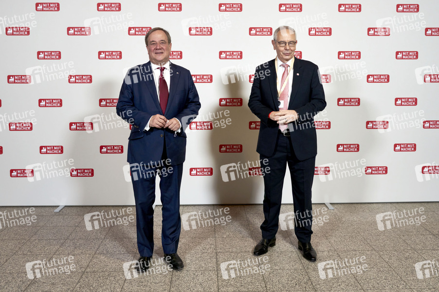 Armin Laschet und Michael Vassiliadis beim 7. Ordentlichen Gewerkschaftskongress der IG Bergbau, Chemie, Energie im Hannover Congress Centrum. Hannover, 27.10.2021