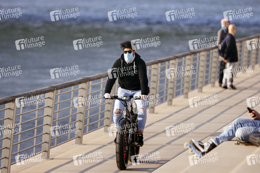 Sport, Bewegung, Ertüchtigung, Gesundheit, Radfahren, Radfahrer, Radeln, Spaziergang, Rheintreppe, Rheinboulevard, Sonnenbaden, Sonne genießen, Frühling, Natur, Luft schnappen, Spaziergang, Frühling, Virenschutz, Ausbreitung, Lock Down, Lockdown, Hautkontakt, Öffentlichkeit, Eindämmung, Seucheneindämmung, anstecken, infizieren, Vorbeugung, Prävention, schützen, Schutz, Ausgangssperre, Ausgangssperren, Ausgangsverbot, Ausgangsverbote, Kontaktverbot, Kontakt-Verbot, Kontaktverbote, Versammlungsfreiheit, Versammlungsverbot, Abriegelungen, Ansammlungsverbote, Ansammlungsverbot, Ausgangseinschränkung, Ausgangsbeschränkungen, Kontaktsperre, Bewegungsfreiheit, Grundrechte, Einschränkung, Verzicht, Seuchenschutz, Mindestabstand, Eindämmung, Seuchenschutz, Corona-Schutz, Virus, Viren, Corona, Sars-CoV-2, Covid-19, Coronavirus, Coronaviren, Corona-Virus, Corona-Viren, Ansteckung, Ansteckungsgefahr, Epidemie, Pandemie, Infektion, Infektionen, Social Distancing, zu Hause bleiben, Selbstisolation, soziale Kontakte, Risiko, Risikobewertung, Maßnahmen, Neuansteckungen, Ansteckung, Coronakrise, Corona-Krise, Coronamaßnahmen, Corona-Schutz, flatten the curve, Ausnahmesituation, Zeitgeschichte, Übertragung, Erreger, Prävention, #stay home, #stayhome, Corona-Regeln, Corona-Maßnahmen, Zwangsquarantäne, Ordnungswidrigkeit, Bußgeld, Ordnungsgeld, Versammlungsfreiheit, nicht mehr als zwei Personen, öffentliche Treffen, Ausgang, Menschengruppen, Menschenansammlung, Menschenmassen, Mundschutz, Atemmaske, Schutzmaske, Mund-Schutz, Atemschutzmaske, Atemschutz, Symbolfoto, Symbolbild