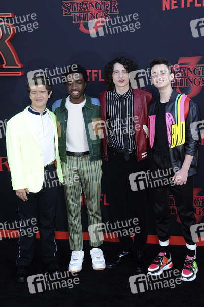 Gaten Matarazzo, Caleb McLaughlin, Finn Wolfhard und Noah Schnapp bei der Weltpremiere der 3. Staffel der Netflix TV-Serie 'Stranger Things' in der Barnum Hall. Santa Monica, 28.06.2019