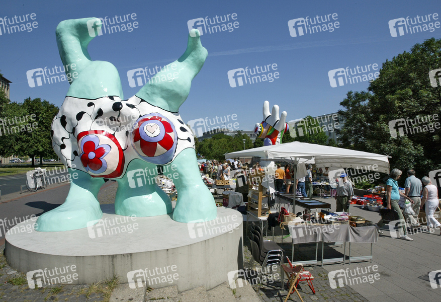 Kunstwerk von Niki de Saint Phalle von 1974, Frauenfiguren mit überdimensionierten Geschlechtsteilen