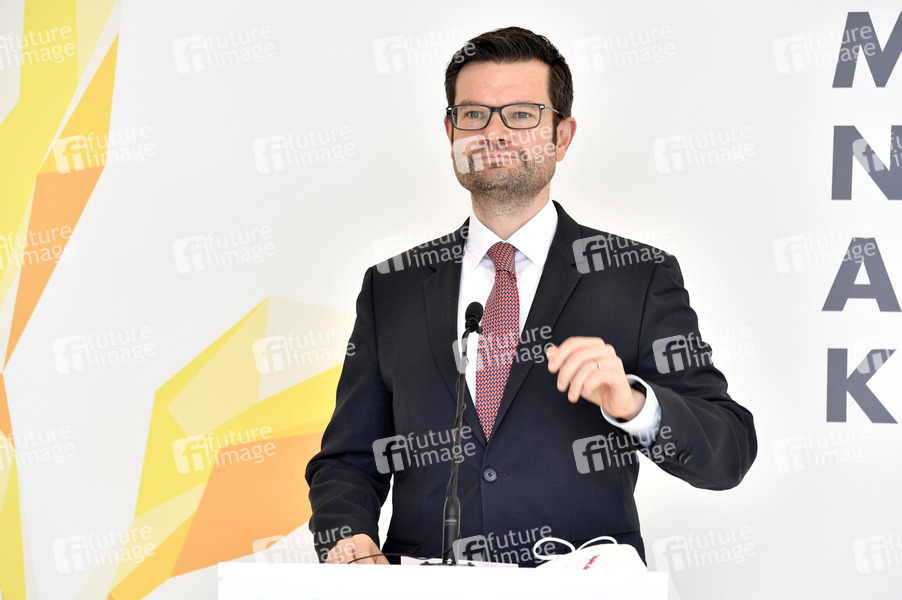Marco Buschmann bei einem Pressestatement der FDP vor der Fraktionssitzung auf der Fraktionsebene im Reichstagsgebäude. Berlin, 04.05.2021