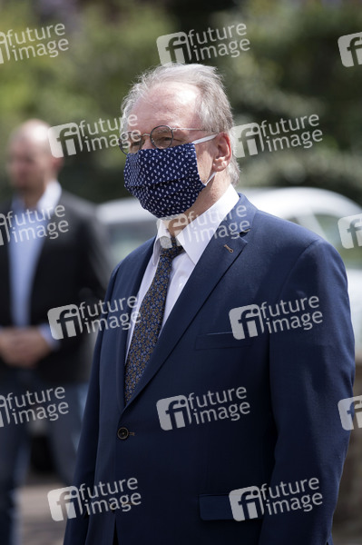 Politiker, CDU, Ministerpräsident von Sachsen-Anhalt, Pressetermin, Politik, Exit-Strategie, Lockdown, Corona, Sars-CoV-2, Covid-19, Coronavirus, Coronaviren, Corona-Virus, Coronakrise, Corona-Krise, Corona-Pandemie, Coronamaßnahmen, Corona-Schutz, Ausnahmesituation, Atemschutz, Atemschutzmaske, Virenschutz, Schutzmaske, Schutzmasken, Atemschutzmasken, Maske, Masken, Mundschutz, Mund-Schutz, Mundschutzpflicht, Maskenpflicht, Mundschutz-Pflicht, Mund-Nase-Schutz, Mund-Nasen-Schutz, MNS