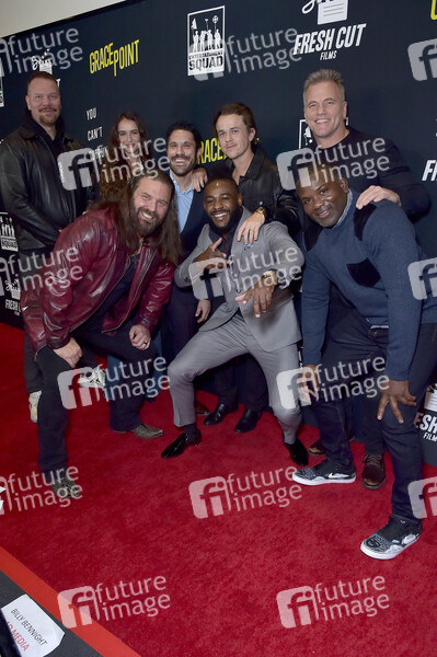Jim Parrack, Harlan Drum, James Storm, Rory Karpf, Aljamain Sterling, John Owen Lowe, Din Thomas und Sean Carrigan bei der Premiere des Kinofilms 'Grace Point' im Regal LA Live. Los Angeles, 30.01.2025