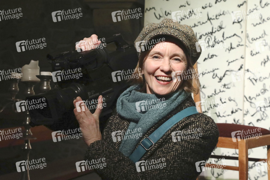 Josephine Hoppe bei der Aufzeichnung der Fernsehsendung zum 100. Geburtstag von Herbert Köfer in Hoppes Hoftheater. Dresden, 06.02.2021