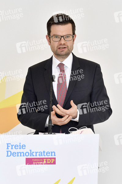 Marco Buschmann bei einem Pressestatement der FDP vor der Fraktionssitzung auf der Fraktionsebene im Reichstagsgebäude. Berlin, 04.05.2021
