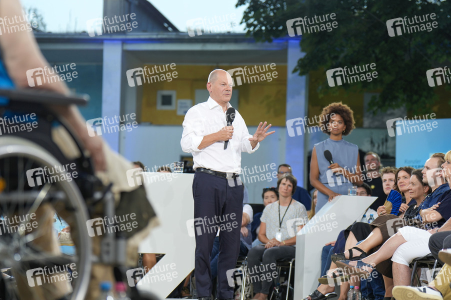 Olaf Scholz beim Kanzlergespräch mit Bürgern in der ufaFabrik. Berlin, 04.09.2024
