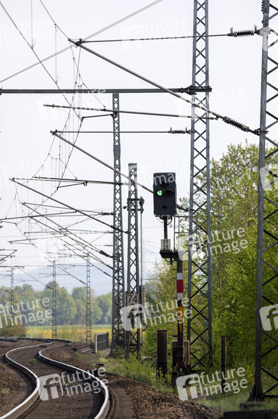 Fahrleitung, Fahrdraht, Signale, Stromabnehmer, Stromkreis, elektrische Energie, 15000 Volt, Elektrischer Schlag, Elektrizität, Bahnstromnetz, Lichtbogen, Gleichstrom, 1400 Ampere, Stromstärke, Quertragwerk, Rillenfahrdraht, Stromschienenoberleitung, Strommaste, Unterwerk, Erdung, Kurzschluss, Blitzschutz, Korrosion, Fahrleitungssysteme, Hauptstrecke, Nebenstrecke, Verkehrssektor, Verkehrsbranche, Fahrstromversorgung, Herausforderungen, Deutsche Bahn, DB, Bahnindustrie, Eisenbahnen, Güterwagen, Transportvolumina, Güterzüge, Versorgungssicherheit, Rail, Cargo, Europäischen Wirtschaft, Deutsche Wirtschaft, Warentransport, Logistiklösungen, Logistik, Logistik-Center, Waggon, Strecken, Schiene, Dienstleistungen, Transferverbindung, Symbolfoto, Symbolbild