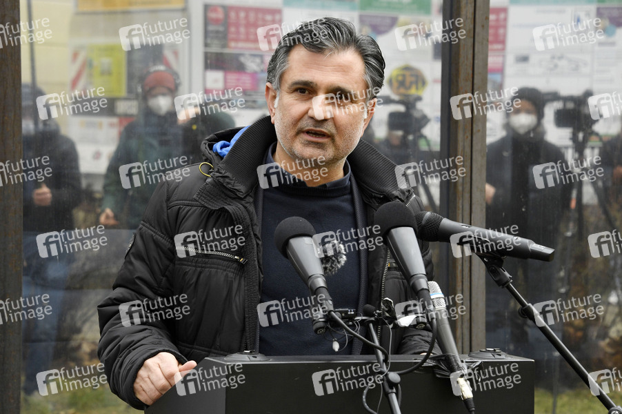 Ziya Pir bei der Pressekonferenz des KulturForum TürkeiDeutschland zur Solidarität mit den gesamten demokratischen Kräften in der Türkei, insbesondere mit inhaftierten Schriftsteller*innen, Künstler*innen, Journalist*innen, Gewerkschafter*innen und Politiker*innen vor dem Maxim Gorki Theater. Berlin, 23.03.2021