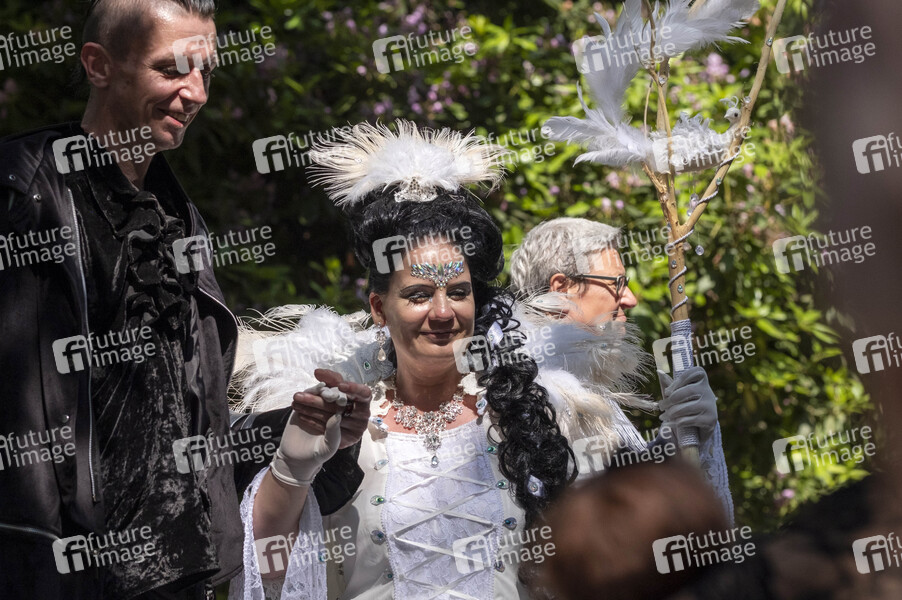 Festivalbesucher beim Viktorianischen Picknick im Clara-Zetkin-Park beim 28. Wave-Gotik-Treffen. Leipzig, 07.06.2019