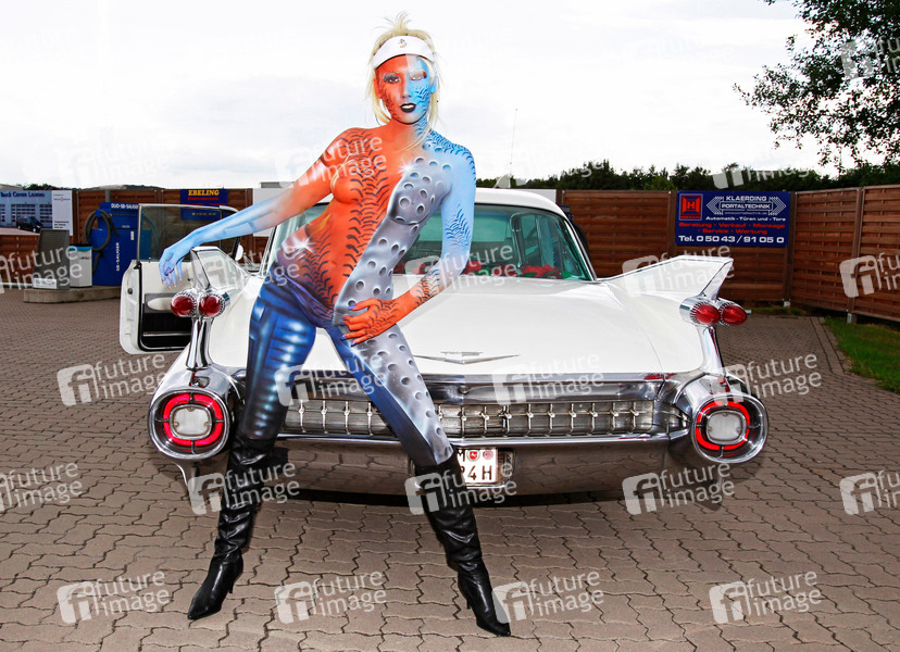 Bodypainting, Erotik, Frau, Mädchen, nackt, draußen, weiblich, Körperkunst, Kunst, Malerei, Oldtimer, Cadillac, erotic, woman, girl, nude, outdoor, female, body art, body painting