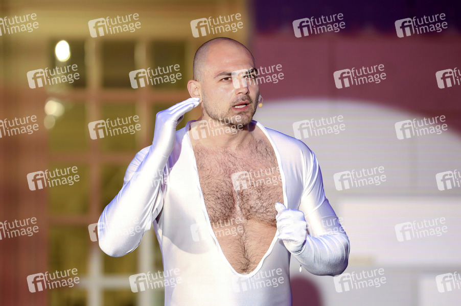 Bozidar Kocevski bei der Fotoprobe des Theaterstücks 'Tartuffe oder Das Schwein der Weisen' Open Air auf dem Vorplatz des Deutschen Theaters. Berlin, 17.05.2021