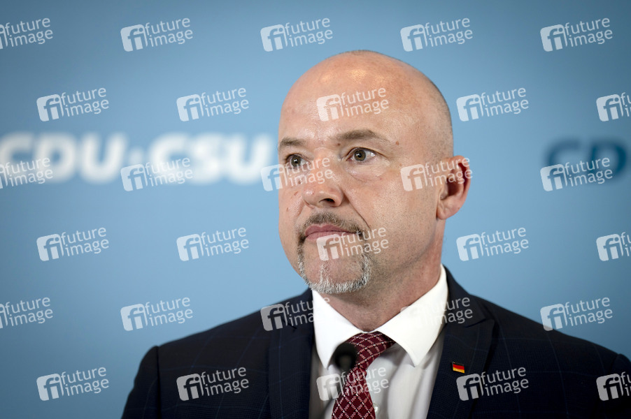 Alexander Hoffmann beim Pressestatement zur Fraktionssitzung der CDU/CSU-Bundestagsfraktion im Reichstagsgebäude. Berlin, 03.06.2025