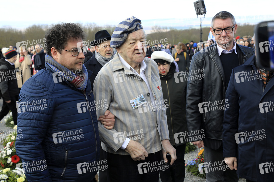 Alojzy Maciak aus Warschau, Überlebender des KZ Buchenwald, bei der Kranzniederlegung zum 80. Jahrestag der Befreiung des Konzentrationslagers Buchenwald und Mittelbau-Dora. Weimar, 06.04.2025