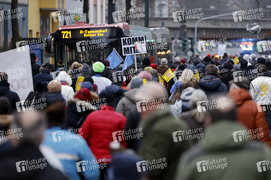 Bei einer angemeldeten Demo demonstrierten etwa 8000 Gegner einer Impfpflicht mit einem Spaziergang gegen die Corona-Maßnahmen der Bundesregierung - darunter auch viele Pflegekräfte, die wegen der Impfpflicht im Gesundheitsbereich ihren Job zu verlieren drohen. Düsseldorf, 15.01.2022