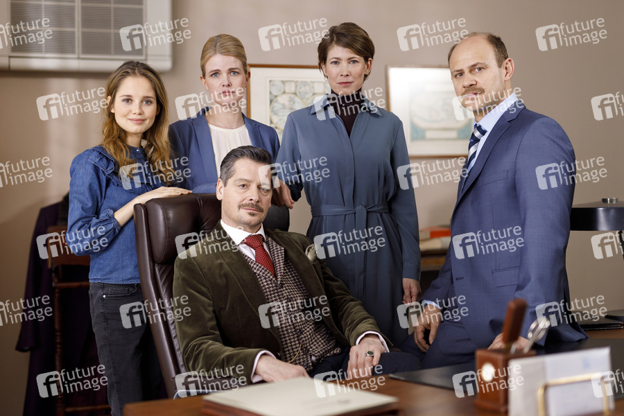 Bianca Nawrath, Mira Bartuschek, Fritz Karl, Sonja Baum und Moritz Führmann beim Fototermin am Set der ARD TV-Serie 'Falk' in einem Gebäude in der Linnicherstraße. Köln, 26.02.2020