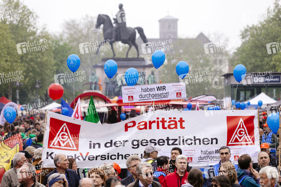 Mai-Demo, Mai-Demonstration, Tag der Arbeit, Mai-Demonstranten, Demo, Demonstranten, Maidemo, Maidemonstranten, Maidemonstration, 1. Mai, Erster Mai, Tarif, Tariflohn, Gewerkschaft, Gewerkschaften, Streik, Tarifflucht, Gewerkschaftsbund, Tarifstreit, IGM, IG Metall, Verdi, Linke, MLPD, DGB, Lohnkosten, Niedriglohn, Klimaschutz, Demo-Schilder, Protestschilder, Lohnkosten, Symbolbild, Symbolfoto