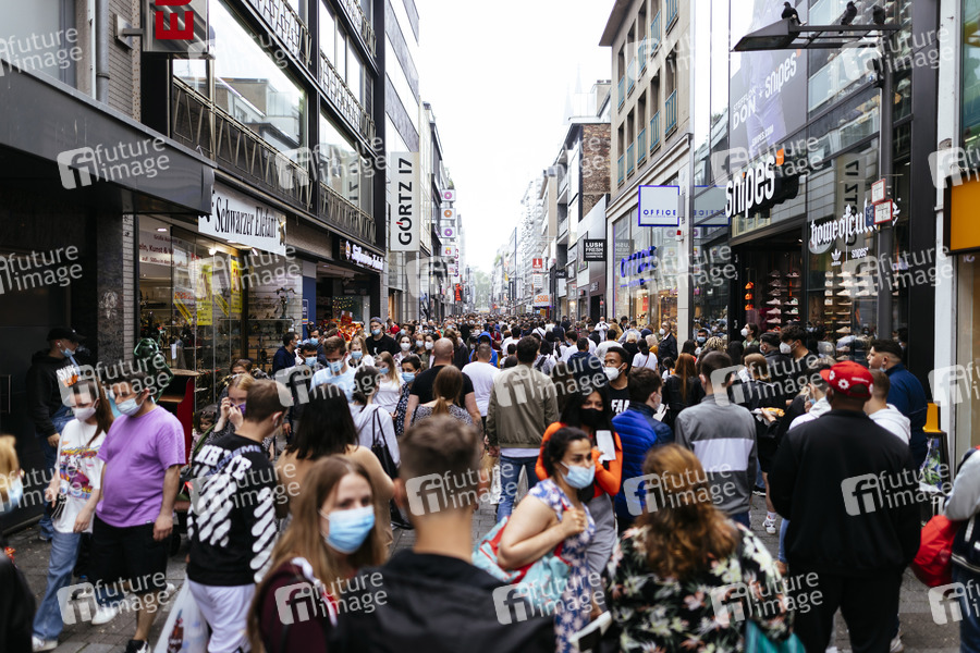 Inzidenz, 7-Tage-Inzidenz, Inzidenzwert, Inzidenzzahlen, Köln, Einkaufen, Shopping, Click and Meet, Geschäfte, Öffnungen, Menschenmenge, Tröpfcheninfektion, Aerosole, Ausgangssperre, Lockerungen, Ausgangsbeschränkungen, Gastronomie, Bars, Kneipen, Öffnen, Notbremse, Corona, Coronakrise, Corona-Maßnahmen, Coronaschutzverordnung, Land NRW, Stadt Köln, Maskenpflicht, Masken, Maske tragen, Mindestabstand, Mund-Nasen-Bedeckung, Mund-Nasen-Schutz, MNS, FFP2, Corona, Virus, Coronavirus, Coronaviren, Corona-Politik, Coronamaßnahmen, Corona-Regeln, Coronaregeln, dritte Welle, zweite Welle, dritte Welle, Kontaktbeschränkungen, Inzidenzwerte, Gesundheit, Hygiene, Neuinfektionen, R-Wert, Inzidenzzahl, Maskenzwang, Infektionsschutzgesetz, Infektionsschutz, Alkoholverbot, Verweilverbot, Verweilverbote, Gesundheitspolitik, Domstadt, Corona-Auflagen, Lockdown, Lock Down, Sommer, ansteigende Temperaturen, Corona-Lockerungen, Tourismus, draußen, Stadtleben, Wirtschaft, Konjunktur, Umsatz, Einzelhandel, Geschäfte, Corona-Auflagen, Testpflicht, Symbolbild, Symbolfoto