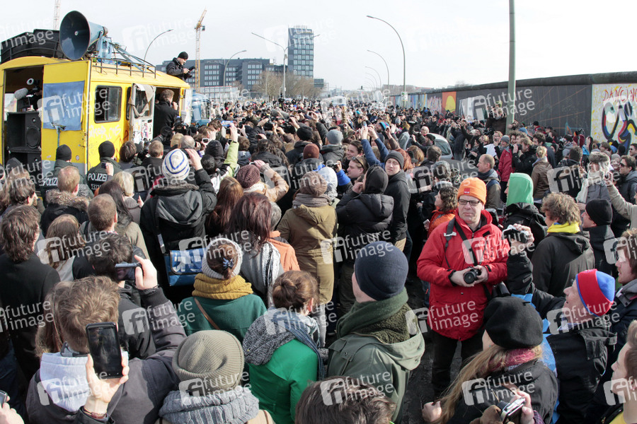David Hasselhoff protestiert an der East Side Gallery gegen Abbau der Berliner Mauer. Berlin, 17.03.2013