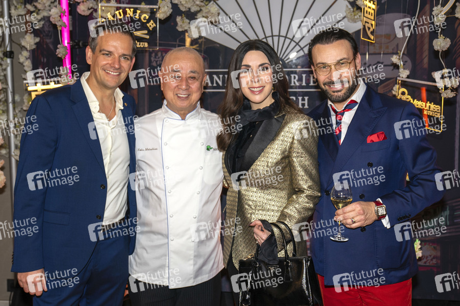 Dominik G. Reiner, Nobu Matsuhisa, Judith Williams und Alexander-Klaus Stecher bei der Shibuya Crossing Party im Hotel Mandarin Oriental. München, 22.02.2024