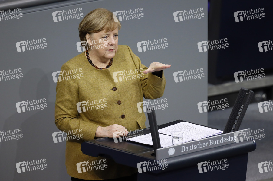 Angela Merkel in der 209. Sitzung des Deutschen Bundestages im Reichstagsgebäude. Berlin, 11.02.2021