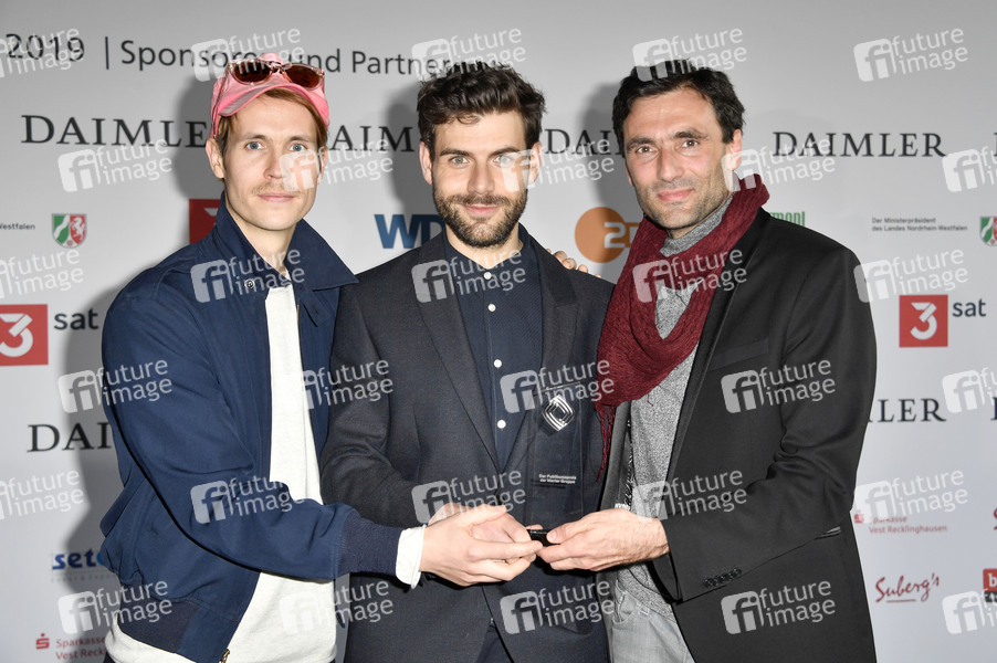 Hans Block, Moritz Riesewieck und Georg Tschurtschenthaler beim Vorempfang zur 55. Verleihung des Grimme Preises 2019 im Grimme-Institut. Marl, 05.04.2019