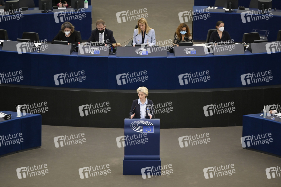 Krieg, Russland, Ukraine, Kriegsverbrechen, Europäisches Parlament, Plenum, Plenartagung, Plenardebatte, Plenarsitzung, Debatte, Rede, Politik, Strasbourg, Strassburg, Europaparlament, Europa-Politik, EU-Abgeordnete, EU-Parlament, EP, Parlament der Europäischen Union, European Parliament, European Union, Parlamentum Europaeum, MdEP, Mitglied des Europäischen Parlaments, Politikerin, Deutschland, CDU, Präsidentin der Europäischen Kommission, EU-Präsidentin