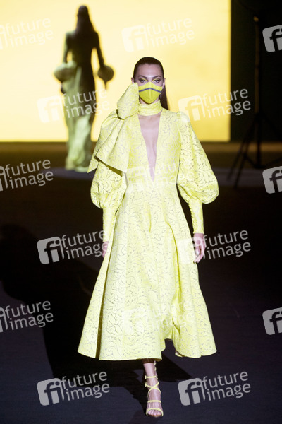 Model bei der Hannibal Laguna Fashion Show auf der 73. Mercedes-Benz Fashion Week Madrid unter Einhaltung aller Corona-Regeln auf dem Messegelände Ifema. Madrid, 09.04.2021