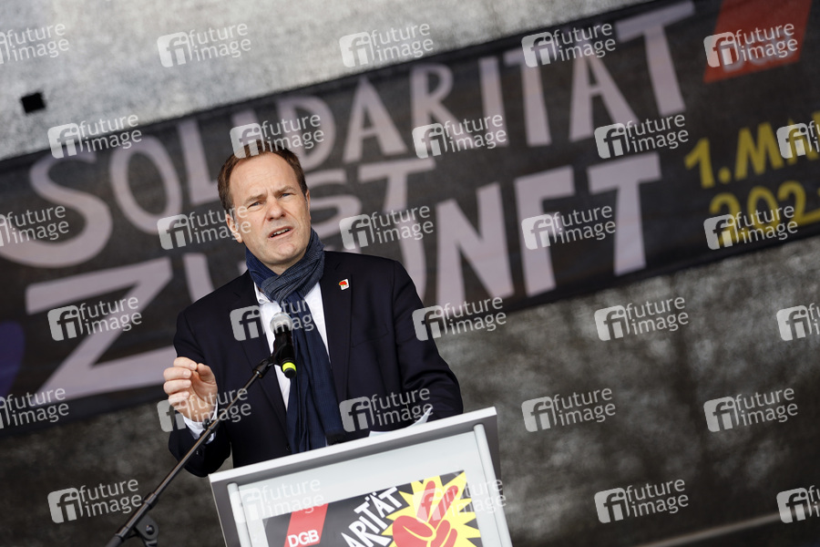 Stephan Keller bei der Kundgebung des NRW DGB zum Ersten Mai im Autokino an der Merkur Arena. Düsseldorf, 01.05.2021