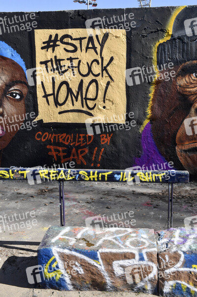 Kunst, Malerei, Graffiti, Kontaktverbot, Abstandsregel, Versammlungsverbot, Seuchenschutz, Quarantäne, Ausgangssperre, Mindestabstand, Social Distancing, Kontakt verboten, Ausgangsbeschränkung, Coronaviren, Virus, Viren, Corona, Covid-19, Coronavirus, Coronaviren, Corona-Virus, Corona-Viren, Ansteckungsgefahr, Epidemie, Pandemie, Infektion, Infektionen, Corona-Hysterie, Corona-Angst, Ansteckungsangst, Seuche, anstecken, Krankheit, Krankheitsverlauf, infiziert, infizieren, Vorbeugung, Prävention, schützen, Schutz, Ausnahmezustand, Risiko, Risikobewertungen, Maßnahmen, Neuansteckungen, Coronamaßnahmen, Corona-Infektion, Corona-Infektionen, Corona-Schutz, menschenleer, #stay home, #stayhome, Symbolfoto, Symbolbild