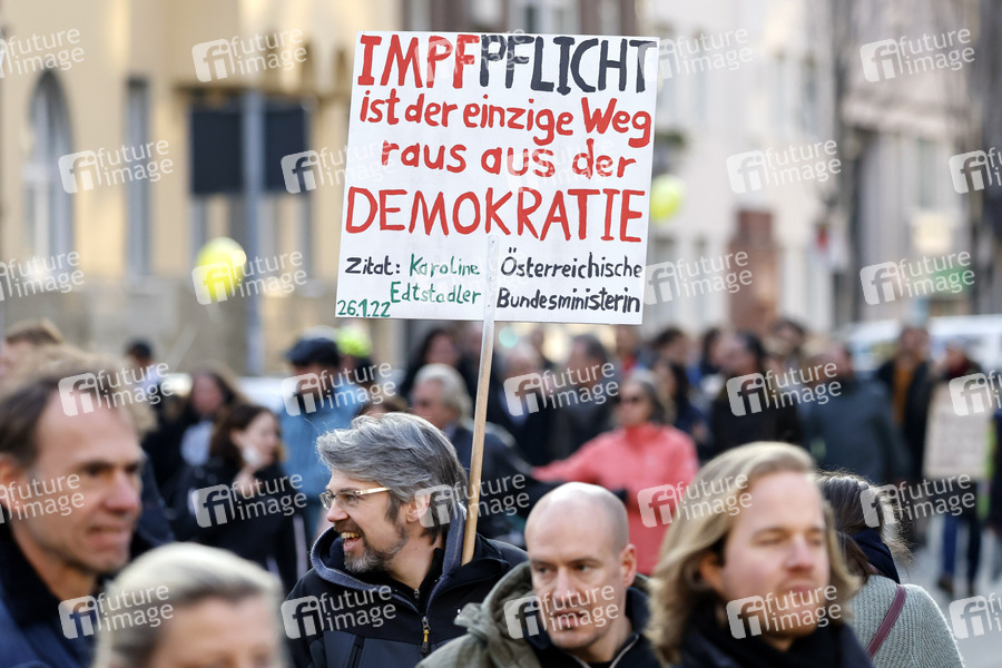 Bei einer angemeldeten Demo unter dem Motto 'Freie Impfentscheidung - Gegen die Impfpflicht' demonstrierten Tausende Gegner einer Impfpflicht mit einem Spaziergang gegen die Corona-Maßnahmen der Bundesregierung und für eine individuelle Impfentscheidung, Grundrechte und 'unversehrte' Kinder - darunter auch viele Pflegekräfte, die wegen der Impfpflicht im Gesundheitsbereich ihren Job zu verlieren drohen. Düsseldorf, 05.03.2022