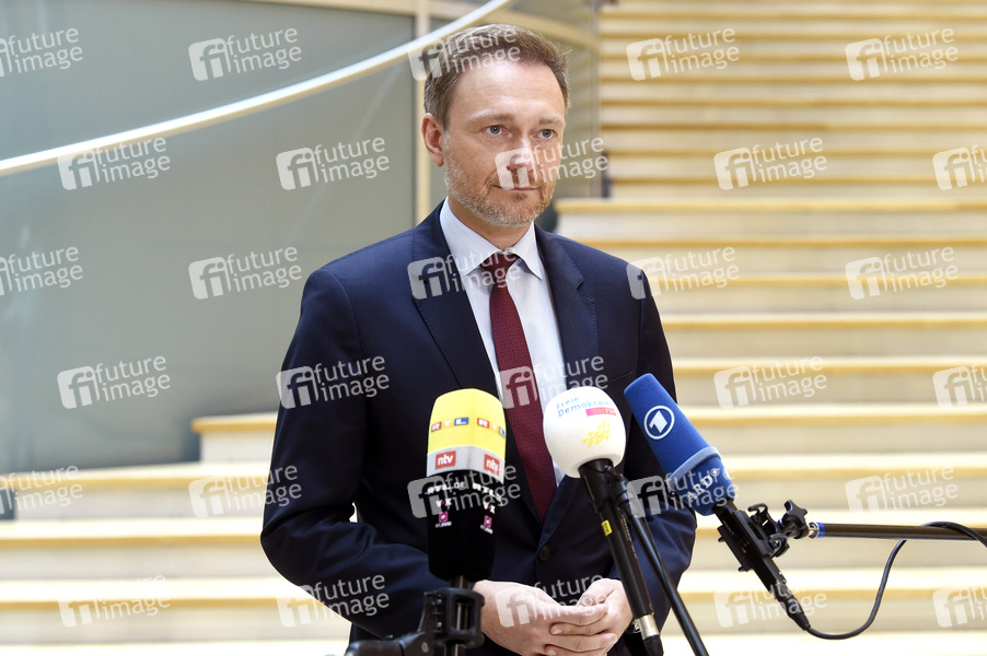 Christian Lindner bei einem Statement der FDP zur politischen Lage im Jakob-Kaiser-Haus. Berlin, 05.05.2021