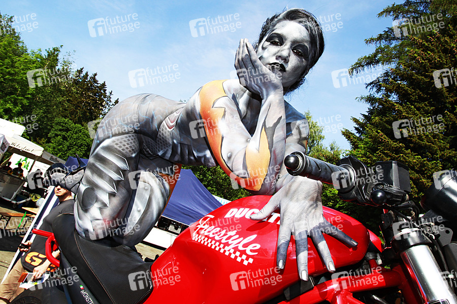 Bodypainting, Erotik, Frau, Mädchen, nackt, draußen, weiblich, Motorrag, Körperkunst, Kunst, Malerei, erotic, woman, girl, nude, outdoor, female, body art, body painting, motorbike, motorcycle
