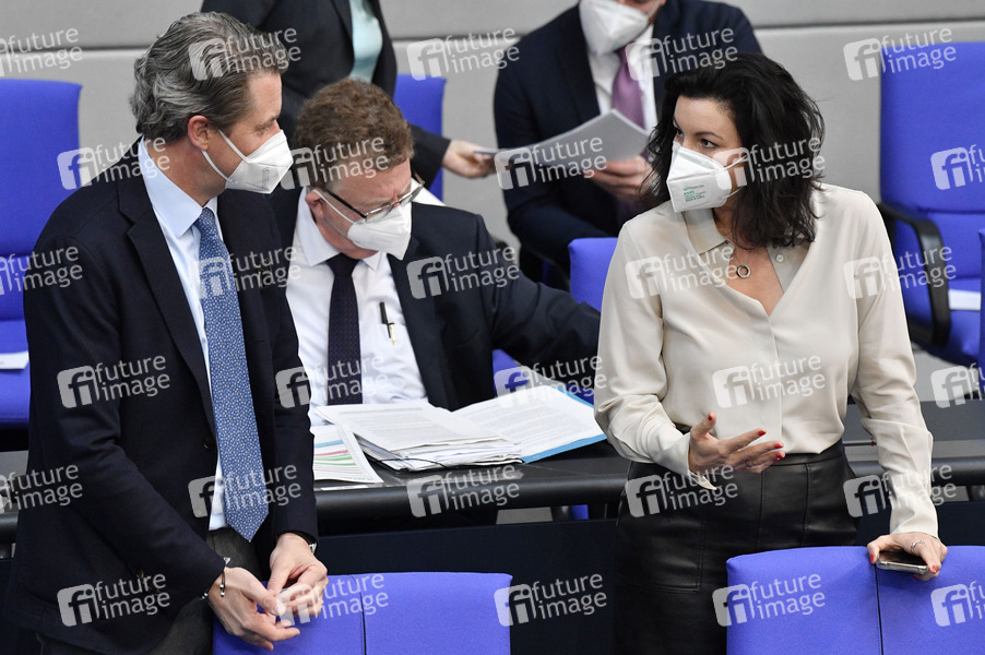 Andreas Scheuer und Dorothee Bär in der 221. Sitzung des Deutschen Bundestages im Reichstagsgebäude. Berlin, 15.04.2021