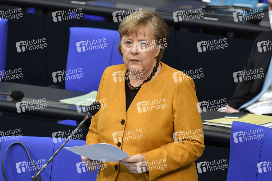 Angela Merkel in der 217. Sitzung des Deutschen Bundestages im Reichstagsgebäude. Berlin, 24.03.2021