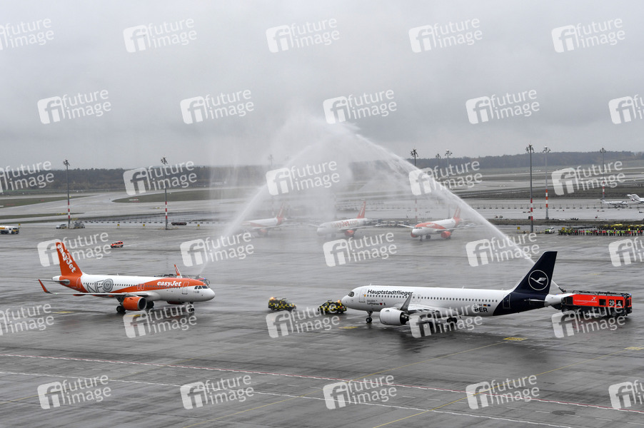 Ankunft der ersten beiden Flüge von easyJet und Lufthansa bei der Eröffnung des Flughafens Berlin-Brandenburg (BER). Schönefeld, 31.10.2020