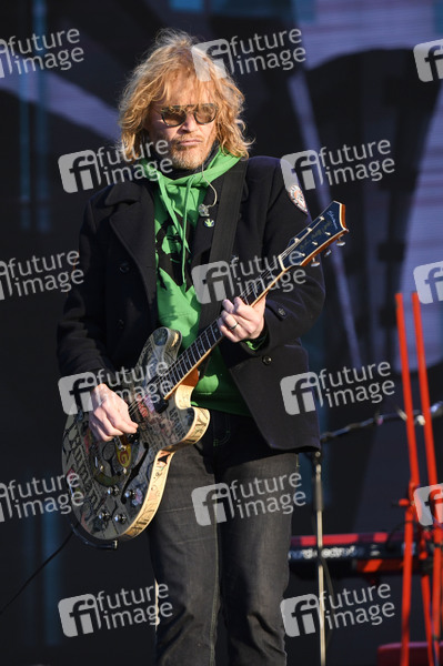 Christof Stein-Schneider von Fury in the Slaughterhouse live beim Autokultur-Konzert auf dem Schützenplatz. Die Besucher verfolgen unter Berücksichtigung klarer Hygiene-Vorschriften während der Corona-Krise den Auftritt aus dem Auto. Hannover, 14.05.2020