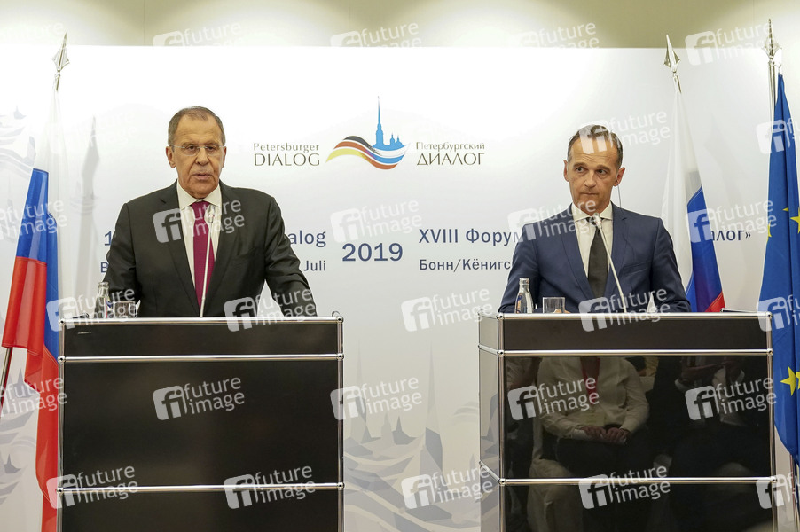 Sergei Wiktorowitsch Lawrow / Sergey Lavrov und Heiko Maas bei einer Pressekonferenz zur Eröffnung vom 18. Petersburger Dialog 2019 im Steigenberger Hotel. Königswinter, 18.07.2019