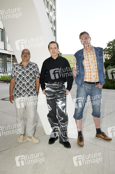 Uwe Kamitz, Timo Jacobs und Fred Aaron Blake bei der Open Air Preview des Kinofilms 'Hochstapler und Ponys / Impostors and Ponies' im Freiluftkino im FMP1. Berlin, 16.08.2025