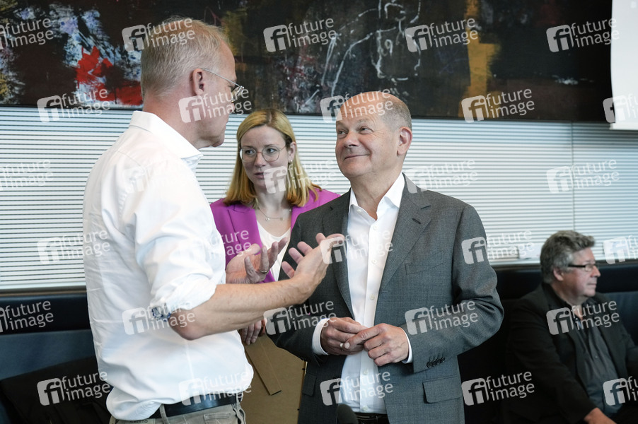 Matthias Miersch und Olaf Scholz bei der Fraktionssitzung der SPD-Bundestagsfraktion im Reichstagsgebäude. Berlin, 25.06.2024