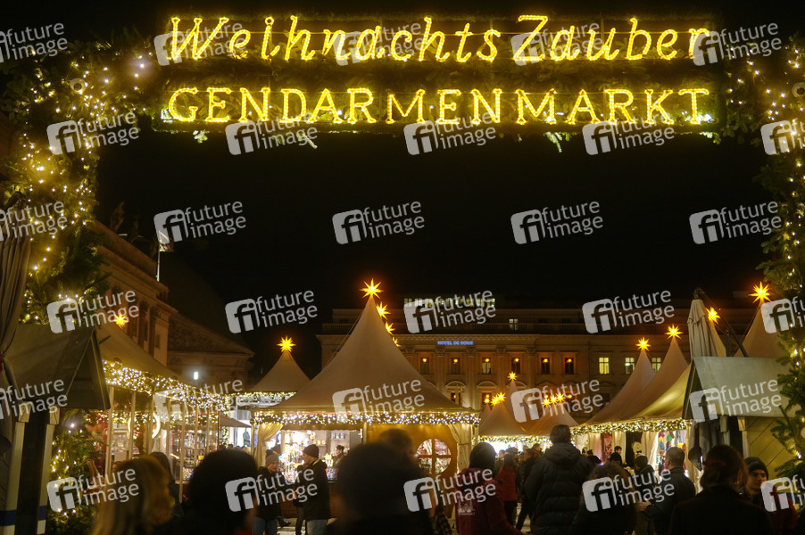 Eingang zum Weihnachtsmarkt WeihnachtsZauber Gendarmenmarkt 2024 auf dem Bebelplatz an der Staatsoper. Berlin, 27.11.2024