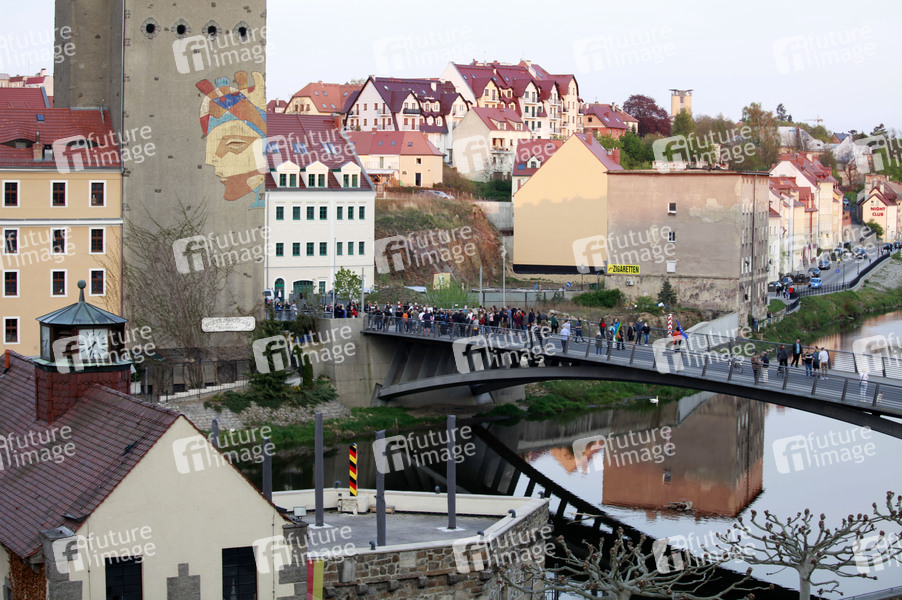 Demonstranten protestieren gegen die geschlossene Grenze zwischen Zgorzelec und Görlitz. Zur Eindämmung des Coronaviruses haben unter anderem Polen und Tschechien Mitte März die Grenzen nach Deutschland geschlossen. Hintergrund des Protestes sind die aktuellen Einschränkungen für Arbeiter, die normalerweise täglich nach Deutschland pendeln, jetzt aber nach Wiedereinreise nach Polen in zweiwöchige Quarantäne müssten. Außerdem sind grenzübergreifende, familiäre Kontakte durch die geschlossenen Grenzen nahezu ausgeschlossen. Görlitz, 24.04.2020