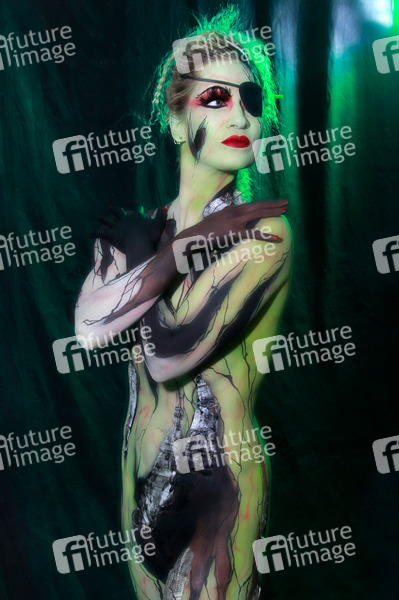Bodypainting, Erotik, Frau, Mädchen, nackt, drinnen, weiblich, Körperkunst, Kunst, Malerei, Augenklappe, erotic, woman, girl, nude, indoor, female, body art, body painting, eyepatch