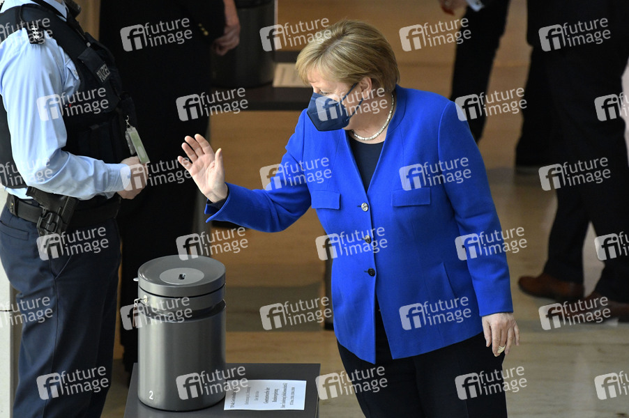 Angela Merkel bei einer Abstimmung im Rahmen der 227. Sitzung des Deutschen Bundestages im Reichstagsgebäude. Berlin, 06.05.2021