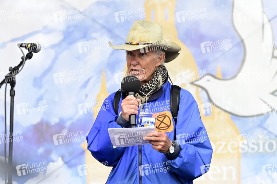 Dennis DuVall bei einer 'Friedensprozession' am Karfreitag unter dem Motto 'Frieden kennt keine Brandmauern' auf dem Postplatz. Dresden, 18.04.2025
