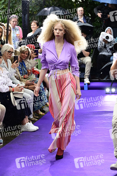 Model bei der Anja Gockel Fashion Show 'Let the Birds Fly' auf der Berlin Fashion Week S/S 2025 im Paris44. Berlin, 02.07.2024