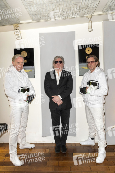 Claude-Oliver Rudolph mit Hayo Lewerentz und Ingo Hauss von U 96 beim Fototermin zum Fantasy-Musical 'Jules Verne, 20.000 Meilen unter dem Meer' im Tonstudio von U96. Hamburg, 21.04.2021