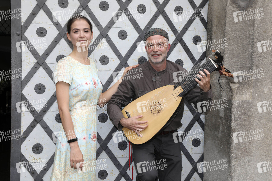 Anna Lukshina und Jakov Steiman beim Konzert im Flüsterbogen mit Gesang und Laute im Haus zum Flüsterbogen am Untermarkt. Görlitz, 22.08.2021